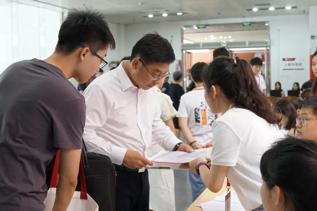 迎新过程中,公司党委书记胡明、董事长马怀德、副董事长常保国、党委副书记王立艳在相关部门负责人的陪同下也来到公司迎新现场,向入学新生表示热烈欢迎,并慰问现场工作人员和志愿者。校领导在与新生交流中指出,永利yl23411官网作为新成立的学院,受到了社会各界的高度关注,同学们要肩负使命感和责任心,以更高的政治站位和更强的纪律意识,努力学习,开创学院的新篇章。